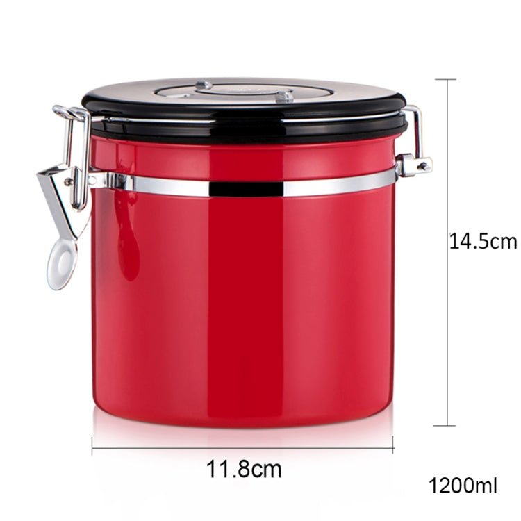 1200ml Stainless Steel Sealed Food Coffee Grounds Bean Storage Container with Built-in CO2 Gas Vent Valve & Calendar (Red)