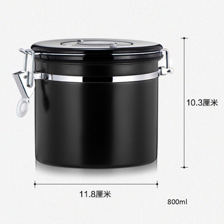 800ml Stainless Steel Sealed Food Coffee Grounds Bean Storage Container with Built-in CO2 Gas Vent Valve & Calendar(Black)